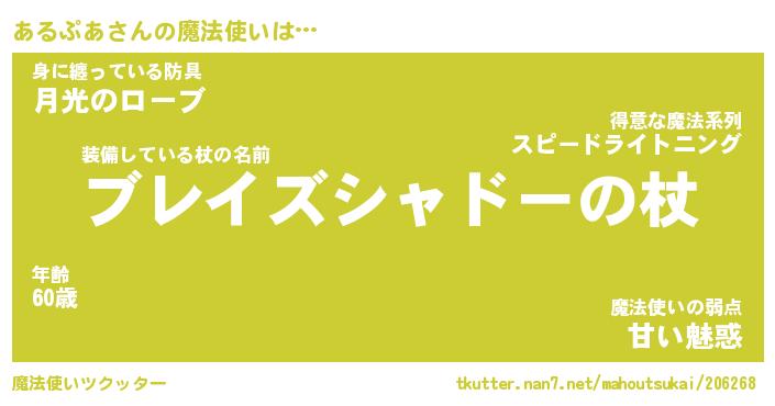 | 男性向けラノベタイトル風あだ名 | 『あるぷあの憂鬱』 |