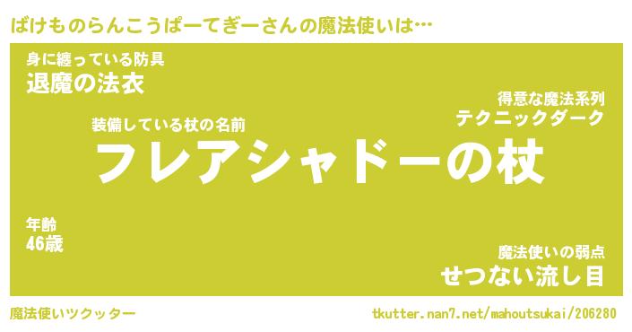 男性向けラノベタイトル風あだ名 | 『ばけものらんこうぱーてぎーの憂鬱』 |