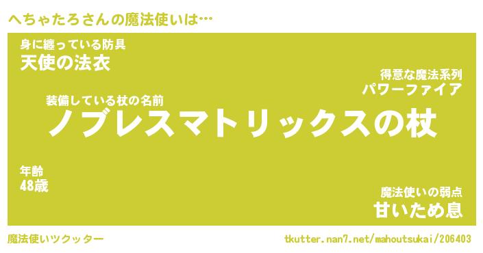 ファンタジー風あだ名 | 『ヘチフェル』『エターナルヘチャタロー』 |