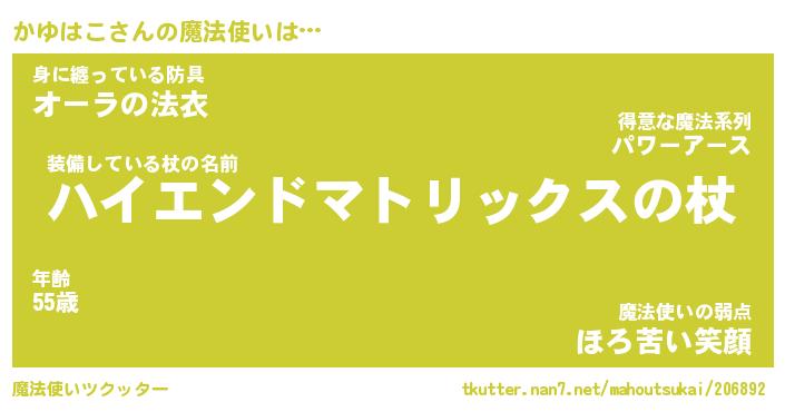 ファンタジー風あだ名 | 『カユフェル』『エターナルカユハコー』 |