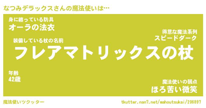 | 男性向けラノベタイトル風あだ名 | 『なつみデラックスの憂鬱』 |