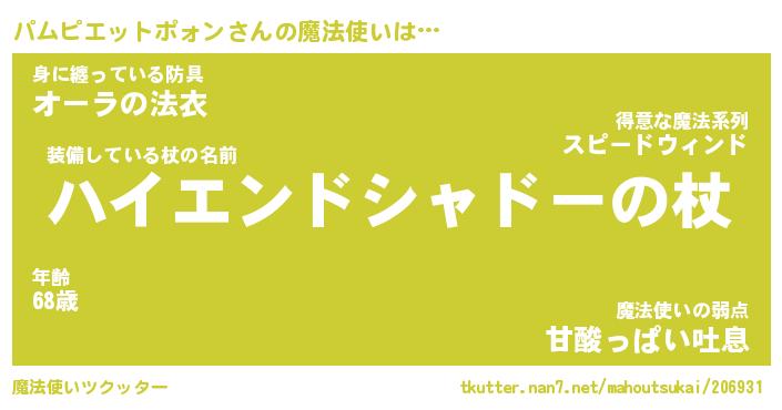 | 伝説のあだ名 | 『封印されし竜騎士パムピエットポォン』 |