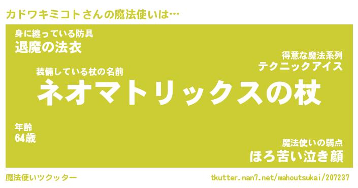 | 肩書あだ名 | 『カドワキミコト社長』 |