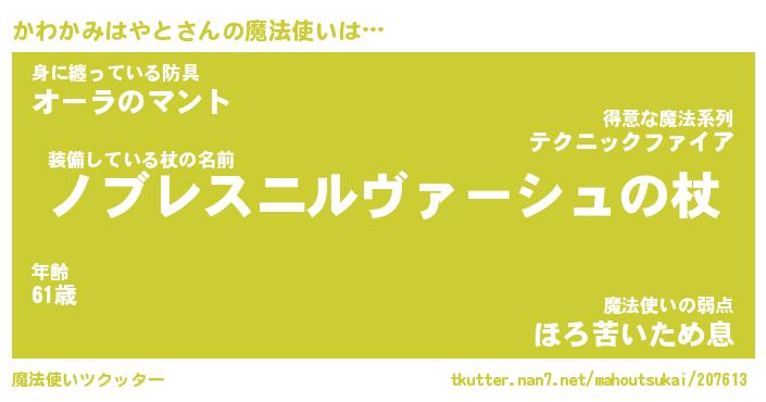 | 肩書あだ名 | 『かわかみはやと御曹司』 |