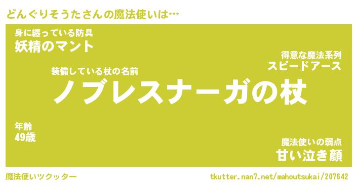 | 男性向けラノベタイトル風あだ名 | 『ドングリソウタアートオンライン』 |