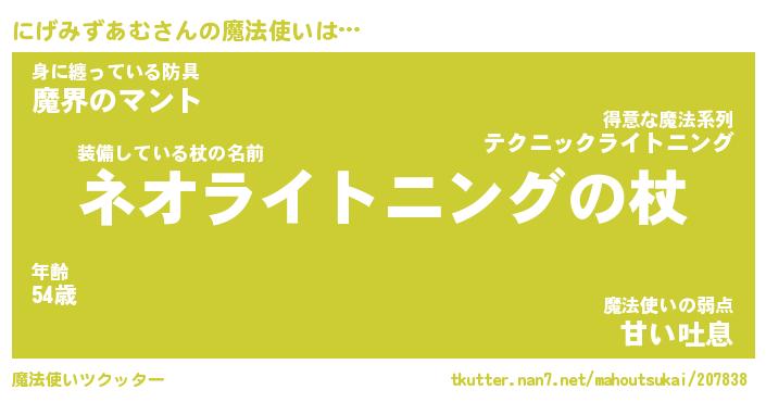 | 男性向けラノベタイトル風あだ名 | 『にげみずあむの憂鬱』 |