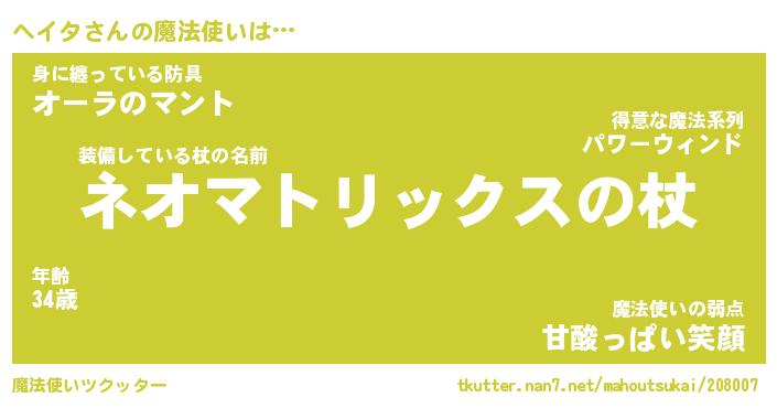 | ポケモン風あだ名 | 『ヘイチュウ』『ヘイタダネ』 |