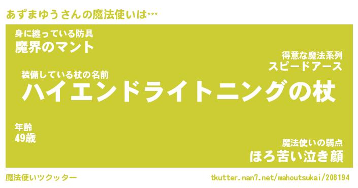 | ファンタジー風あだ名 | 『アズフェル』『エターナルアズマユウー』 |