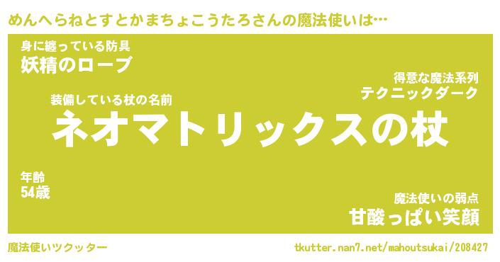 | ツイッター | めんへらねとすとかまちょこうたろさんのツイッターID『masyumaro_man』 |