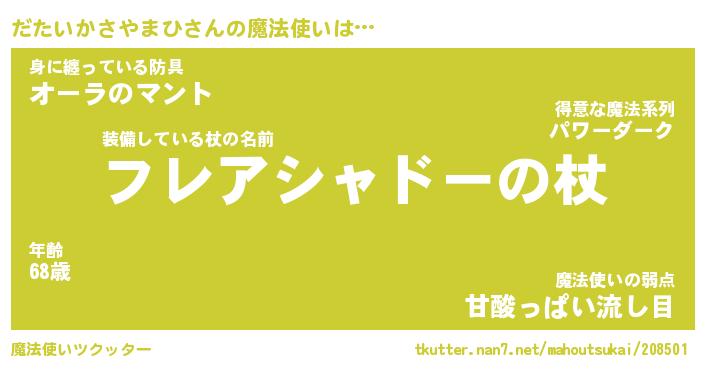 | 男性向けラノベタイトル風あだ名 | 『だたいかさやまひの憂鬱』 |