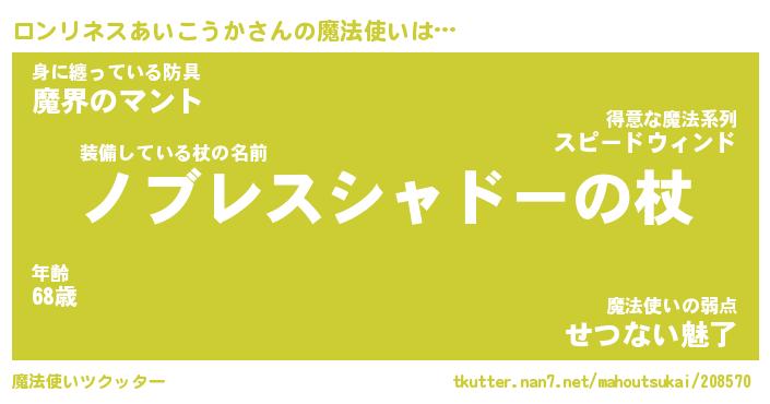 | 伝説のあだ名 | 『封印されし竜騎士ロンリネスあいこうか』 |