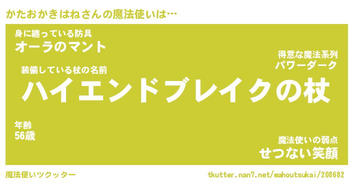 | 伝説のあだ名 | 『封印されし傭兵かたおかきはね』 |