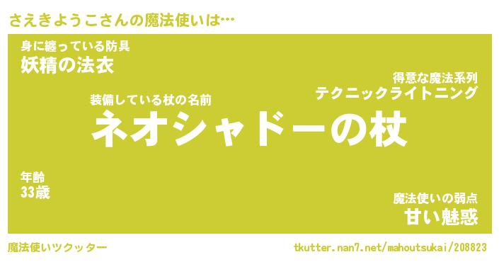 | ヒーロー風カッコイイあだ名 | 『スーパーサエキヨウコ』『魔戒騎士サエ』 |