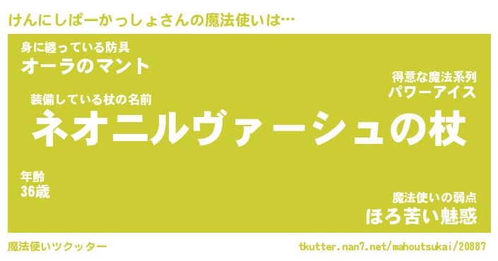 | 男性向けラノベタイトル風あだ名 | 『けんにしぱーかっしょの憂鬱』 |