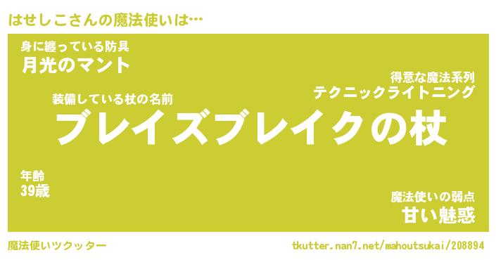 | ヒーロー風カッコイイあだ名 | 『スーパーハセシコ』『魔戒騎士ハセ』 |