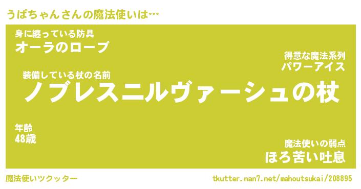 | ファンタジー風あだ名 | 『ウパフェル』『エターナルウパチャンー』 |