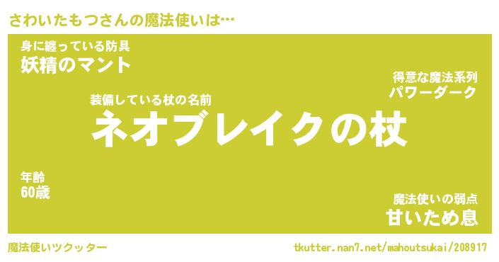 | ヒーロー風カッコイイあだ名 | 『スーパーサワイタモツ』『魔戒騎士サワ』 |