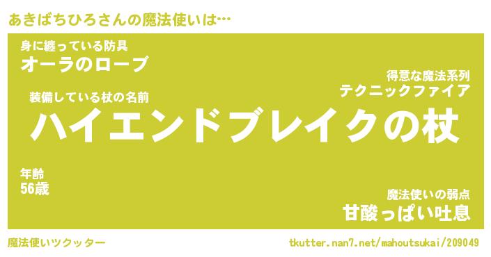 | 伝説のあだ名 | 『封印されし傭兵あきばちひろ』 |