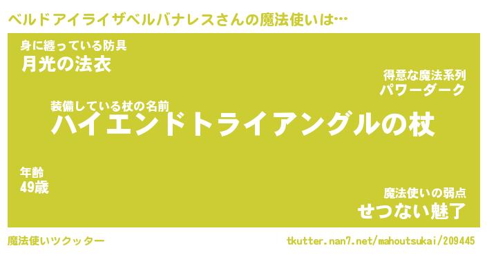 | 伝説のあだ名 | 『封印されし傭兵ベルドアイライザベルバナレス』 |