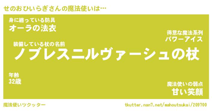 | 伝説のあだ名 | 『封印されしスナイパーせのおひいらぎ』 |