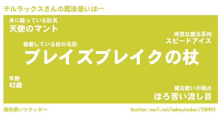 | 男性向けラノベタイトル風あだ名 | 『テルラックスの憂鬱』 |