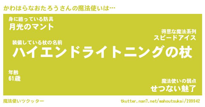 | 伝説のあだ名 | 『封印されし傭兵かわはらなおたろう』 |
