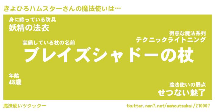 | 男性向けラノベタイトル風あだ名 | 『きよひろハムスターの憂鬱』 |