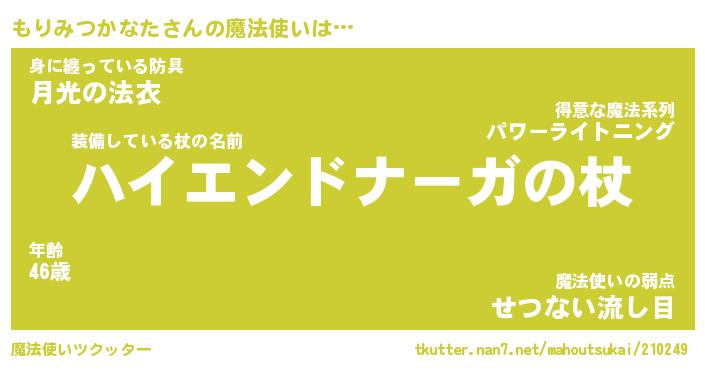 | 男性向けラノベタイトル風あだ名 | 『モリミツカナタアートオンライン』 |