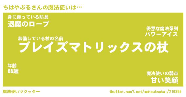 | ヒーロー風カッコイイあだ名 | 『スーパーチハヤブル』『天弓騎士チハ』 |