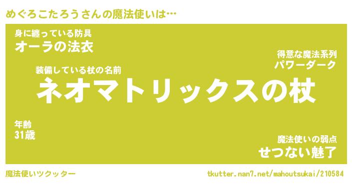 | 男性向けラノベタイトル風あだ名 | 『メグロコタロウアートオンライン』 |