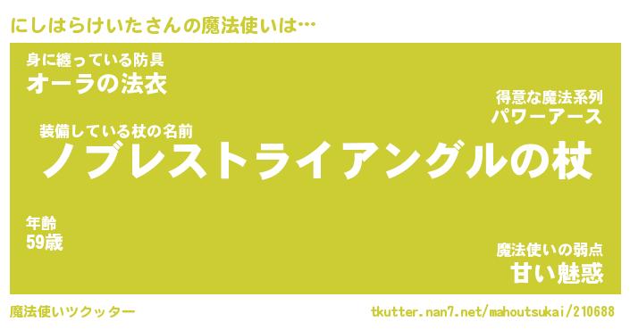 | 胡散臭い通販商品みたいなあだ名 | 『億万長者になれる水晶球…その名も「にしはらけいた」』 |