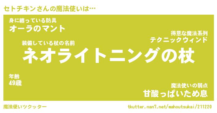 | 男性向けラノベタイトル風あだ名 | 『セトチキンの憂鬱』 |