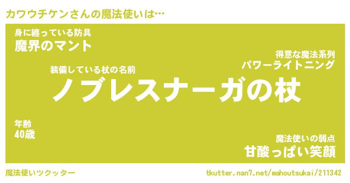 | ヒーロー風カッコイイあだ名 | 『スーパーカワウチケン』『幻影騎士カワ』 |