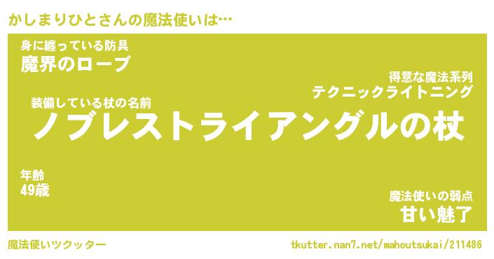 | 男性向けラノベタイトル風あだ名 | 『カシマリヒトアートオンライン』 |