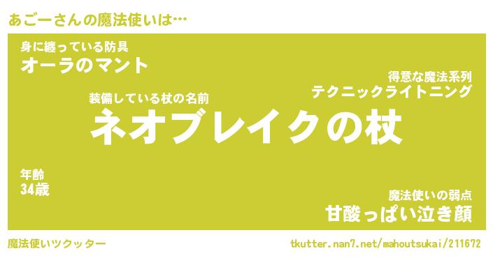 | 男性向けラノベタイトル風あだ名 | 『あごーの憂鬱』 |