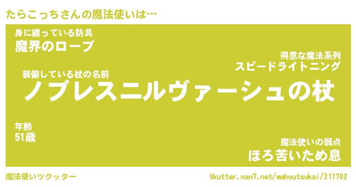 | ヒーロー風カッコイイあだ名 | 『スーパータラコッチ』『幻影騎士タラ』 |