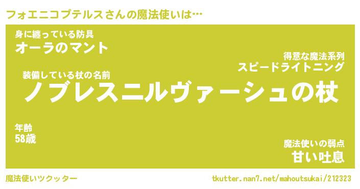 | 肩書あだ名 | 『フォエニコプテルス御曹司』 |