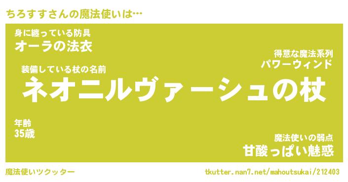 | ヘコむあだ名 | 『ちろっふぃ~』『つくし』『ちろを』 |
