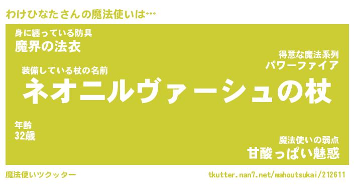 | ヒーロー風カッコイイあだ名 | 『スーパーワケヒナタ』『銀牙騎士ワケ』 |