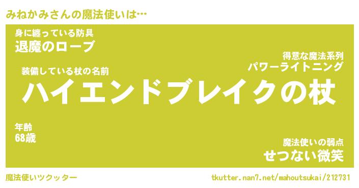 | 伝説のあだ名 | 『封印されし傭兵みねかみ』 |