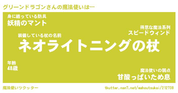 | 男性向けラノベタイトル風あだ名 | 『グリーンドラゴンの憂鬱』 |