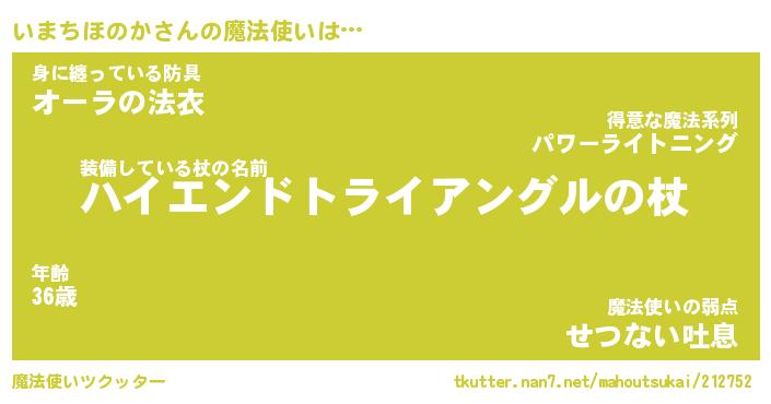 | 男性向けラノベタイトル風あだ名 | 『イマチホノカアートオンライン』 |
