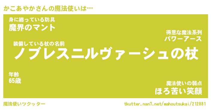 | ファンタジー風あだ名 | 『カコフェル』『エターナルカコアヤカー』 |