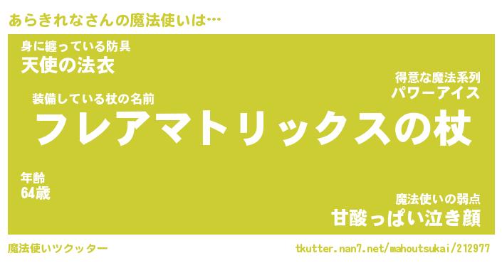 | ファンタジー風あだ名 | 『アラフェル』『エターナルアラキレナー』 |