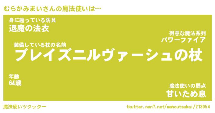 | 肩書あだ名 | 『むらかみまい御曹司』 |