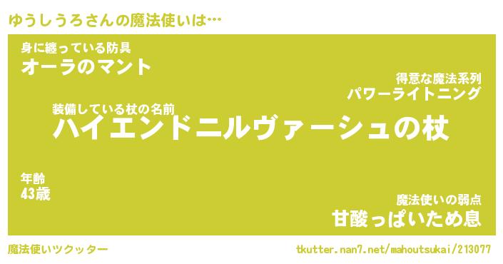 | ヒーロー風カッコイイあだ名 | 『スーパーユウシウロ』『魔戒騎士ユウ』 |
