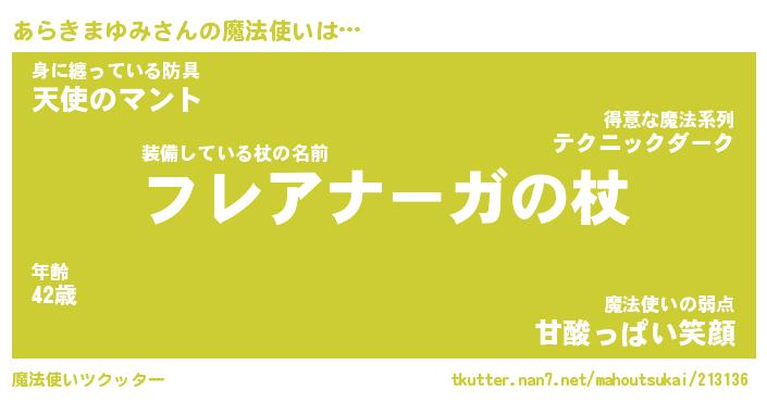 | ヒーロー風カッコイイあだ名 | 『スーパーアラキマユミ』『銀牙騎士アラ』 |
