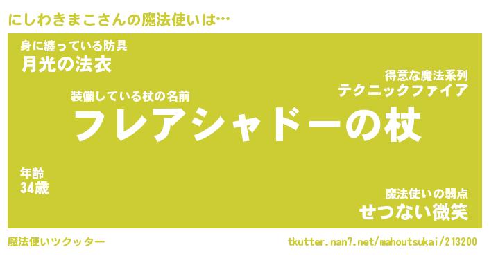 | ヒーロー風カッコイイあだ名 | 『スーパーニシワキマコ』『天弓騎士ニシ』 |