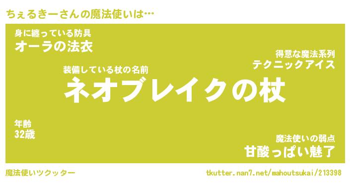 | 肩書あだ名 | 『ちぇるきー店長』『ちぇるきー総理大臣』 |