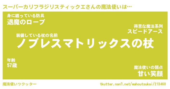 | ツイッター | スーパーカリフラジリスティックエさんのツイッターID『namakemono_man』 |